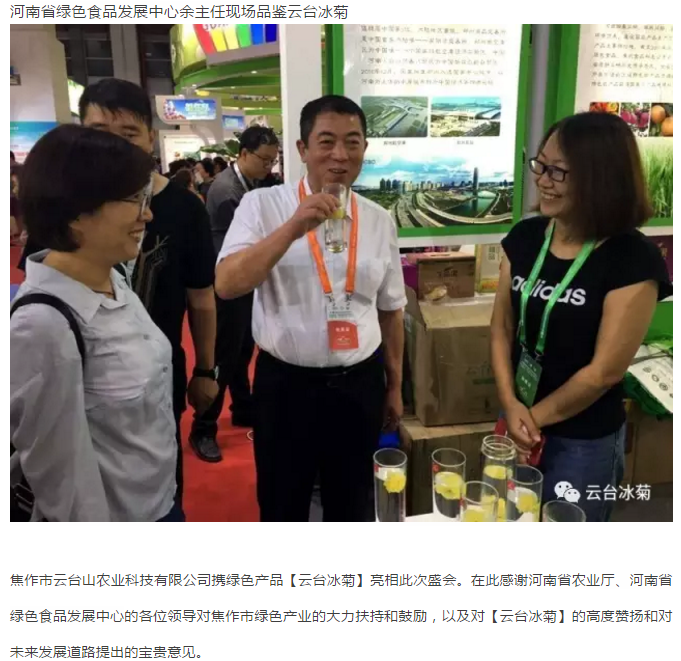 云臺(tái)冰菊不僅凸顯了河南綠色食品大家族、新發(fā)展和新形象,也為本屆博覽會(huì)“綠色理念、綠色生產(chǎn)、綠色消費(fèi)”主題貢獻(xiàn)了一己之力,受到蒞會(huì)領(lǐng)導(dǎo)、廣大市民、國(guó)內(nèi)外客商和各類(lèi)媒體的廣泛關(guān)注和高度稱(chēng)贊。